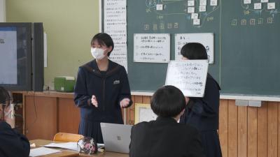 2月15日、奥能登教育事務所や能登町教育委員会、他校の先生が本校を訪れ授業をご覧になりました。そのうち3年生の社会の授業は「今後10年日本に女性の総理大臣が誕生するか」というテーマでした。生徒たちはさまざまな資料を読み解き、活発に議論を交わしました。参加された方からは、生徒の発言の多さを評価していただきました。