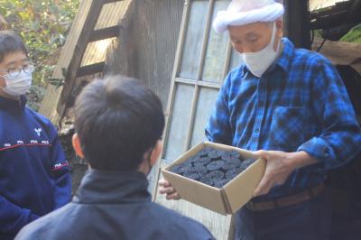 11月28日、1年生は上町にある池下さんの炭焼き小屋を訪れ、地元の伝統産業について学びました。柳田は、以前から炭焼きが盛んな土地柄でしたが、近年は生産者の数が極めて少なくなっています。案内してくださった上段さんから炭を作る工程などを教えていただき、薪を炭小屋に搬入する体験をしました。また完成した美しい炭を見せていただきました。