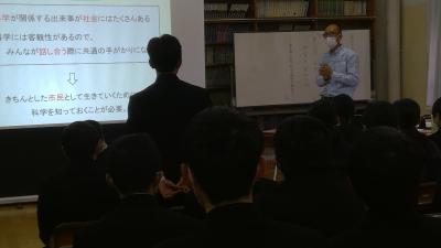11月30日、東京大学海洋アライアンス事業の一環として、本校生徒対象の講演がありました。講師の東京大学特任教授の保坂直紀さんは、科学を学ぶことが民主主義社会を作ることにつながる、ということを具体的な例を示しながらお話になりました。その前提としての理科学習の重要性についても強調しておられました。なぜ勉強をするのか、その理由の一端を示していただいた講演となりました。