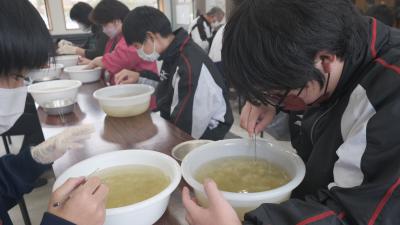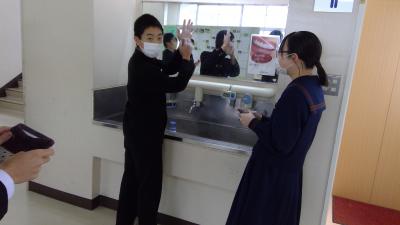 11月30日の昼休み、保健委員会の主催で「手洗い選手権」がおこなわれました。指の間や手首など必要部分を適切な時間で丁寧に洗っているかなどの基準を設け、16点満点で競い合いました。あわただしい時間でしたが、たくさんの生徒が選手権に参加していました。この選手権をきっかけに、手洗いの大切さが再認識されたようです。