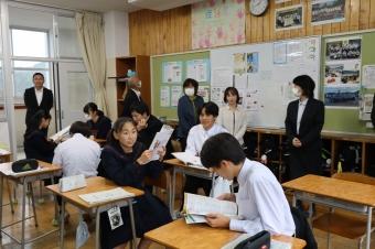 プロジェクトに参加している香川県の12校の生徒代表3名と先生方4名が来校し、360コの金継ぎシーグラスブローチを生徒会のメンバーと共に展示しました。また、お昼を一緒に食べるなどして交流することもできまた。短い時間でしたがとても楽しく過ごすことができ、香川県の先生方、生徒の皆さんありがとうございました。