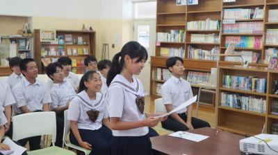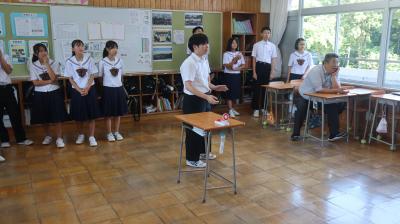 1学期に行われた、奥能登大会、全能登大会、県陸場競技大会等で入賞した卓球部、野球部、陸上部源さんの納賞と校内漢字コンテスト合格者、英語検定で満点賞をとった生徒への表彰式を行いました。その後、1学期の終業式を行いました。