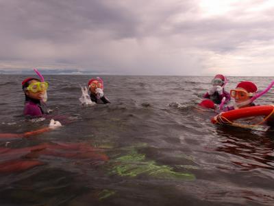 15日、2年生が海洋教育の一環としてスノーケリング体験をのと海洋ふれあいセンターで行いました。生徒達はウエットスーツを着てのスノーケリングは初めてで、とてもわくわくしながら、海中の生物を探していました。