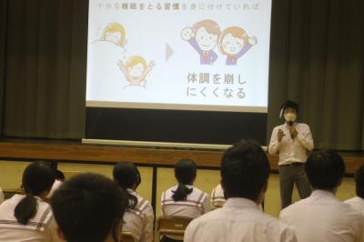 睡眠についての講話 2021年9月21日 14時42分 9月21日、外部講師をお招きし、睡眠についてのお話しがありました。夜眠れない、あるいは夜更かしをしてしまうといった悩みを抱えている生徒も多いようです。今回の講演をきっかけに、質の高い睡眠を心がけてほしいと思います。 いいね